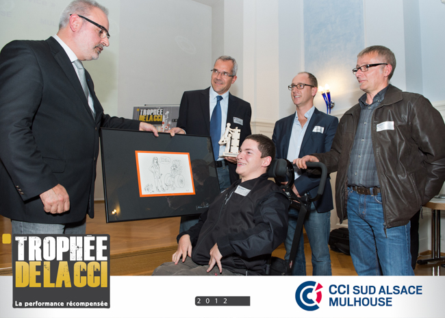 | Depuis plusieurs années, la CCI Sud Alsace Mulhouse a pour coutume de remettre les Trophées de l'Economie aux entreprises méritantes du Sud Alsace. Cela fait 3 années, que la CCI Sud Alsace a accepté d'intégrer dans les thèmes qui sont retenus pour la nomination des Trophées, la notion d'handicap. Ainsi, a été créé le Trophées Economie Handicap qui est remis aux entreprises du secteur qui ont été sélectionnées. Une commission "économie handicap" a été créée au sein de la CCI animée par Monsieur BOIDEVEZI, dans laquelle siège Action et Compétence, la Ville de Mulhouse, Centrapro, le Centre de Réadaptation de Mulhouse, FACE. Cette commission a établi un certain nombre de critères sur la base desquels la sélection est effectuée. Le principe général retenu est de prendre en compte l'effort déployé par l'employeur en faveur du handicap dans son entreprise, soit en terme d'embauches de personnes handicapées, de maintien dans l'emploi de salariés en risque d'inaptitude, de formation et du recours aux secteurs adapté et protégé. Pour les entreprises dont l'effectif est supérieur à 20 salariés et donc soumise à l'obligation de quota de 6%, il est pris en compte les efforts fournis au-delà de sa simple obligation. Sont retenus également les employeurs de moins de 20 salariés ayant fournis des efforts sur le sujet et qui ne sont pas soumises à cette obligation. |