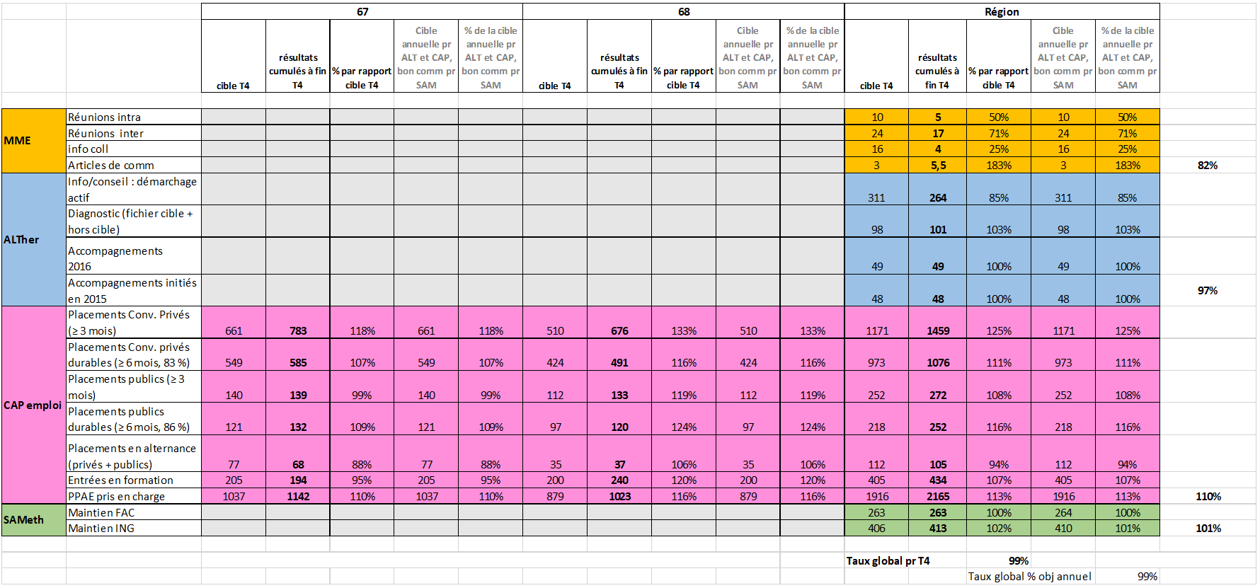Le taux global d’atteinte des objectifs est de 99%.