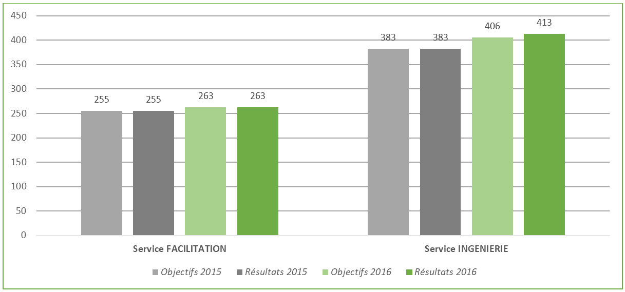 Pour le Sameth, les résultats maintiennent l’équilibre (100%). Le service FACILITATION atteint 100% et le service INGENIERIE atteint 102% malgré l’augmentation des objectifs par rapport à N-1.